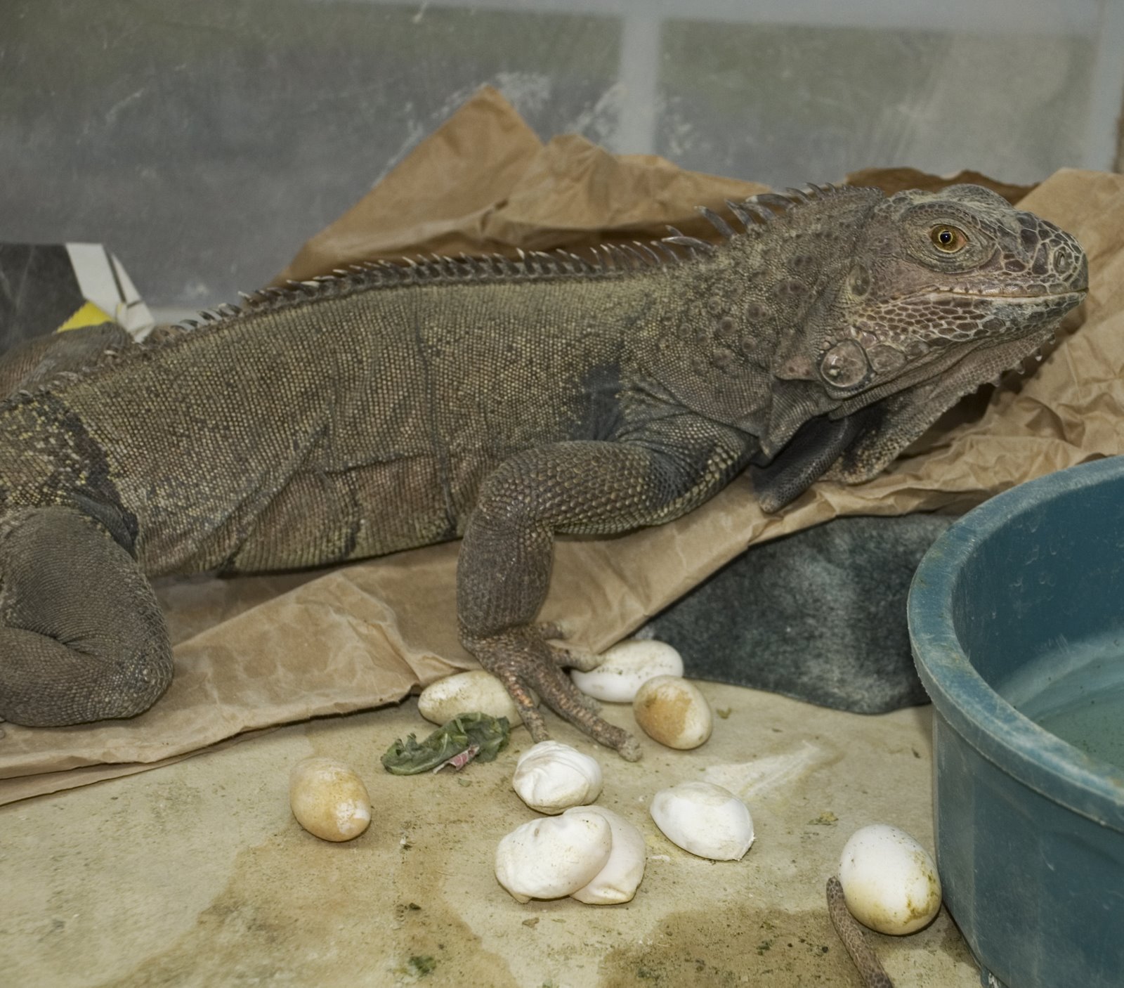 More than a year ago, Stew was acting a little sluggish and not eating, and I thought she might be “egg-bound.” I did some internet reading and learned that you can help female iguanas lay their eggs by creating an egg box. If they are unable to lay the eggs, they can die.