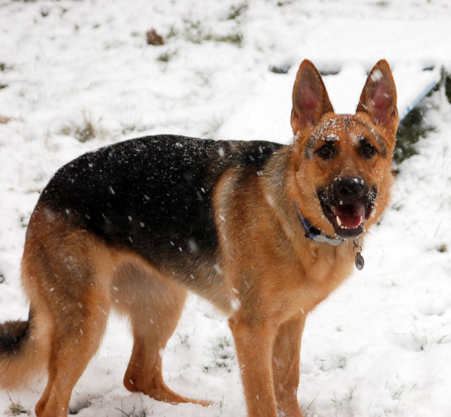 I let Isis out that night, hoping to see her romp around in the snow like she loved to do. She used to race from one end of the yard to the other. Rob’s dad said she was trying to put her feet in every inch of it. She’s always loved the snow. It snowed the first week she was with us, and despite being born in Southern California, she was a snow dog at heart.