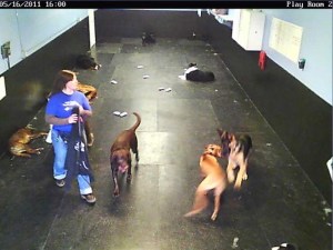 When I do see him on the webcam, he’s having the best time, usually chasing and/or chewing on the head of another dog. He plays rough, although his teachers haven’t mentioned that being a problem. If he gets too rambunctious, they call him away and have him sit. One time, he grabbed another dog’s collar and they gave him a time out.