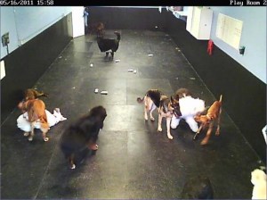 I’m troubled when I check the webcam throughout the day and he’s not in the playroom for extended periods of time. Has he been given a time out? Is he being so disruptive in his crate that they are waiting for him to calm down before they let him come out and play again? Or is he just enjoying some outdoor time?