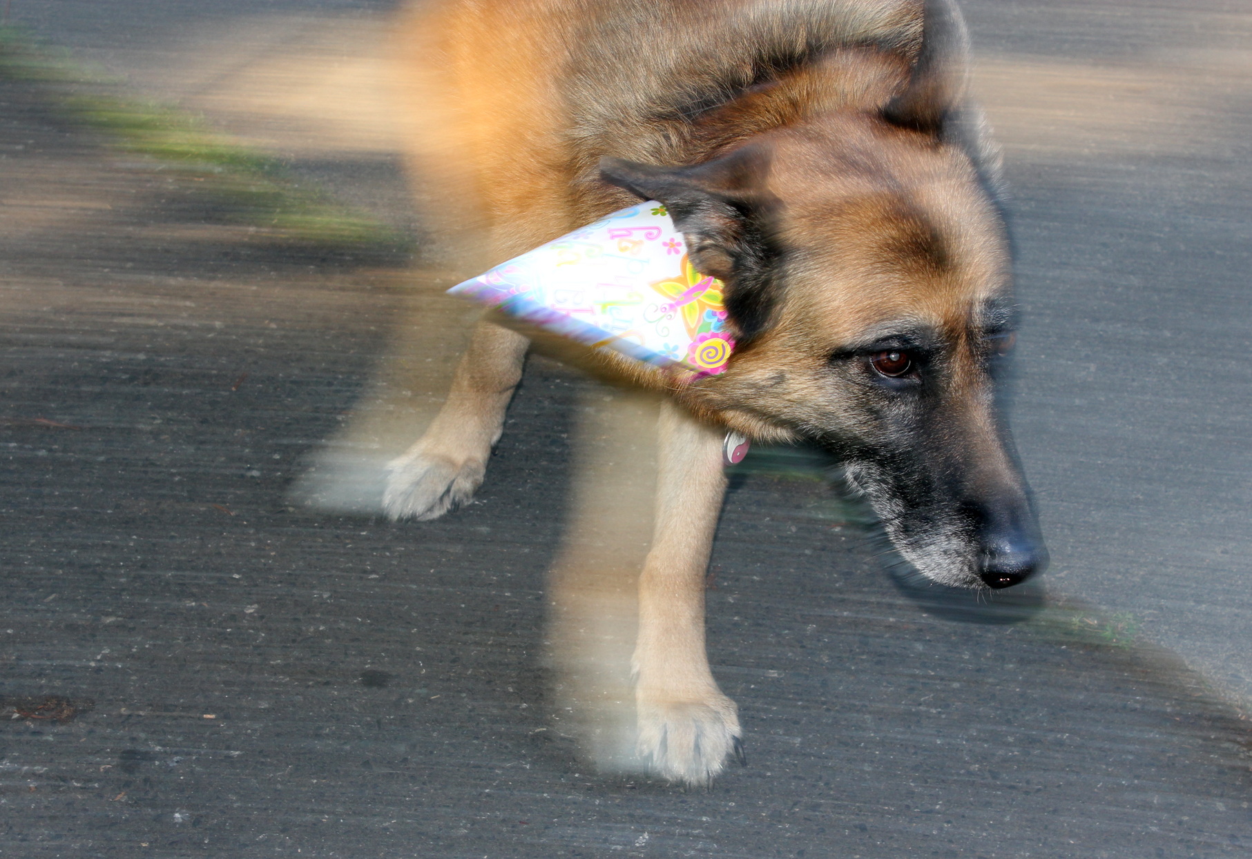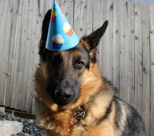 1) She likes to sit in the backyard so much that sometimes she doesn’t come in when we call her. That’s fine, we can just leave her out there. But when we try to play with her, she stands with one foot on a ball and barks at us, refusing to give us the ball, or let us catch her, or put funny hats on her for a birthday photo.