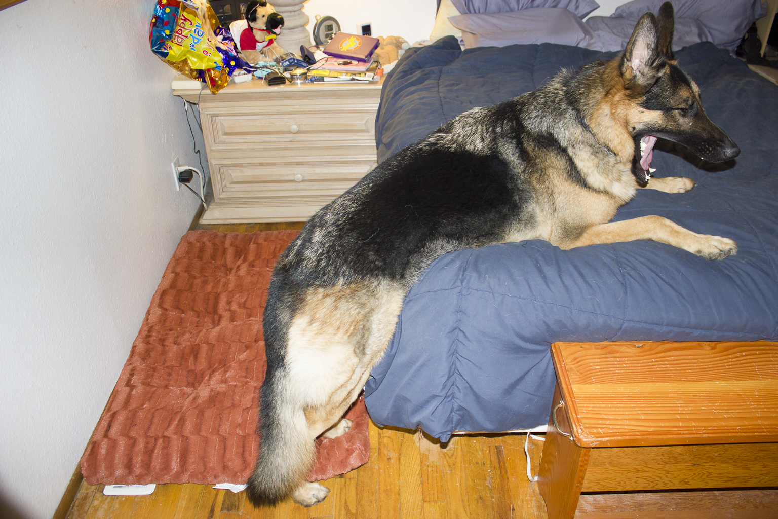 Previous Image Next Image Yawn We ordered a matching bed for Leo, and he was so excited he jumped on the people bed.