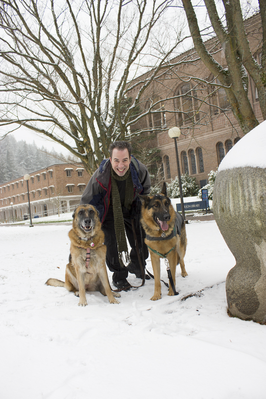 Congratulations! I was thinking we were going to have a white Christmas, and then the rain came and washed it all away! Boo! I love how happy your hubby and the pups all look! 🙂