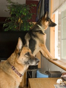Rattled, but undeterred, I took Leo over to Mia, and they introduced themselves to each other in what I believe to be the customary way among German shepherds. Some sniffing, a bark or two. They didn’t immediately start romping together, but you could tell they weren’t going to be mortal enemies.