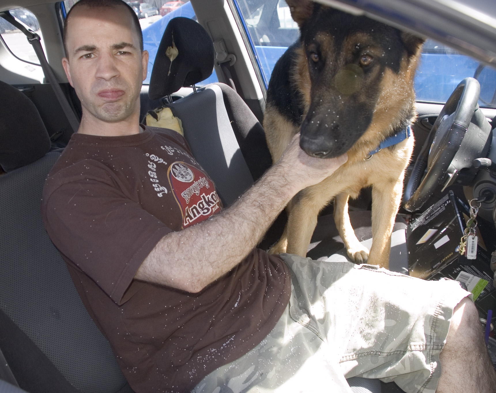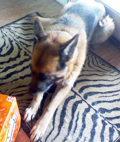 Last Tuesday, Rob’s mom called me and said, “There’s a four-and-a-half-year-old female German shepherd whose owners moved away and abandoned it.”
