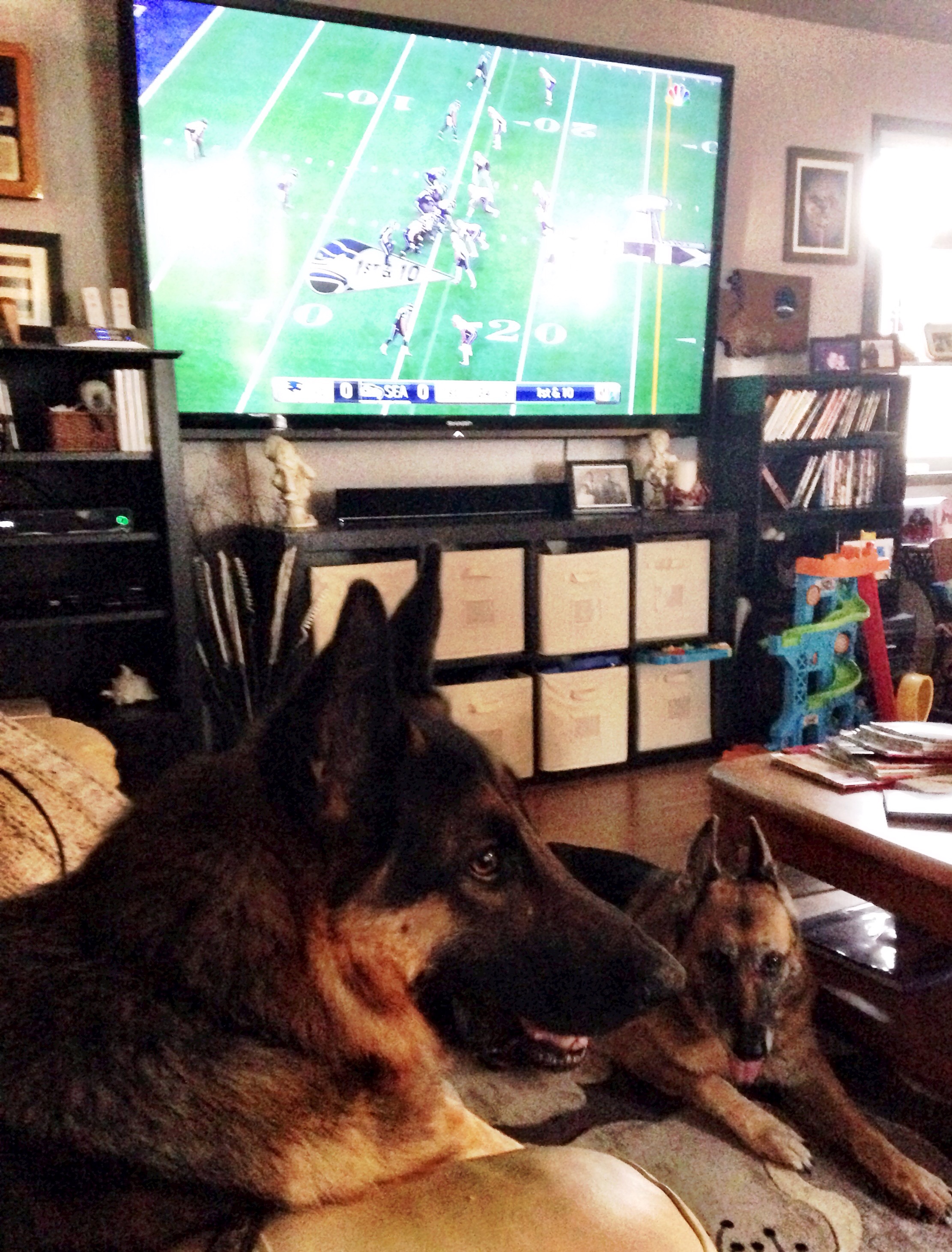 Richard German (shepherd) and Miashawn cheer on the Seahawks